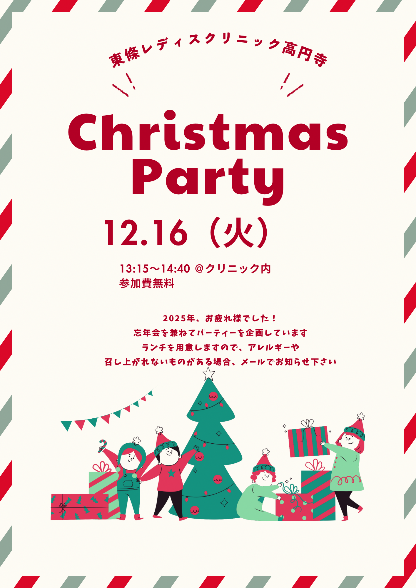 オープニングスタッフとして頑張ってくれたスタッフには感謝を込めて、写真のようなクリスマスパーティを先日開催しました。働きやすいクリニック、お子様のいらっしゃる方も参加しやすいクリニックを目指し、院内のイベントは来年もランチタイムに行いますので、ご興味のある方、ぜひ応募フォームからご応募お待ちしております。
