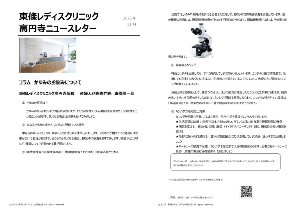 ニュースレター2025年11月号「かゆみのお悩みについて」を公開しました
